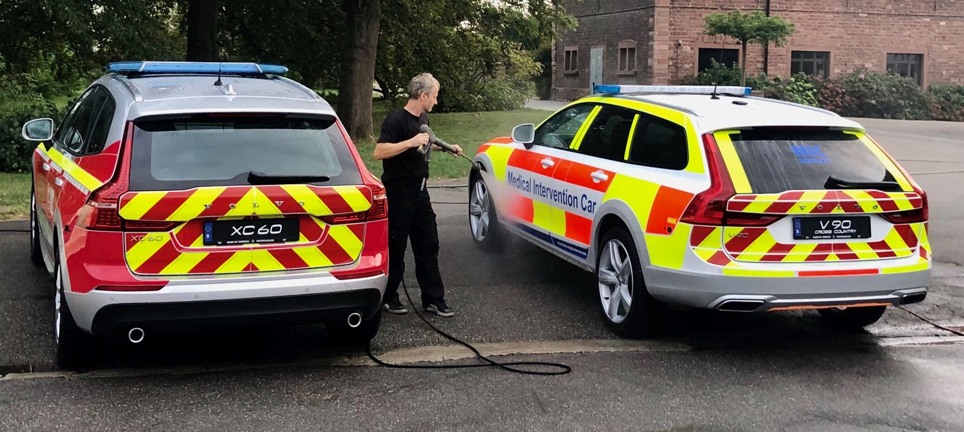 Spülen Sie das Fahrzeug vor dem Waschen gründlich mit viel Wasser aus dem Schlauch oder dem Hochdruckreiniger ab.